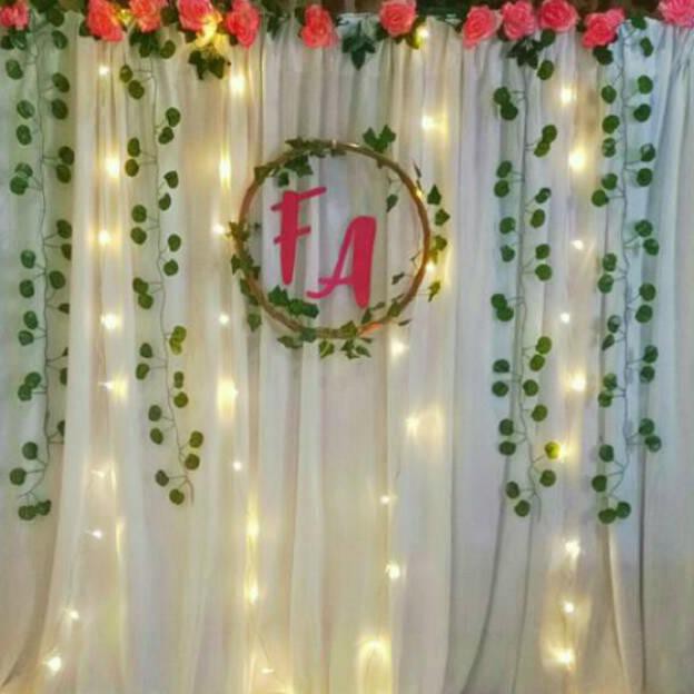 Backdrop dekorasi lamaran putih rampel / wedding / nikahan / khitanan.